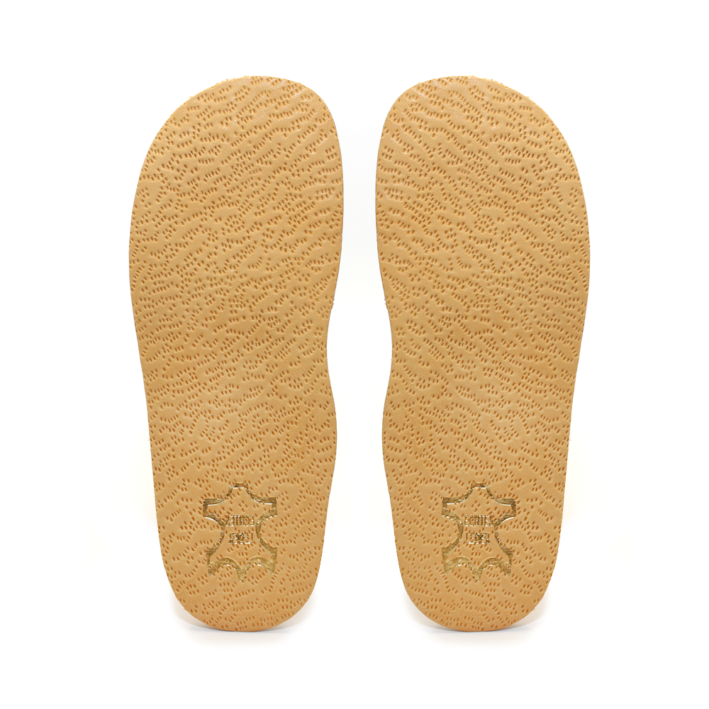 Partea superioară din piele autentică iar partea inferioară este din cauciuc elastic. Se potrivesc ușor și ocupă puțin spațiu în pantof.  Moalețea și elasticitatea oferă o plimbare ușoară și confortabilă.