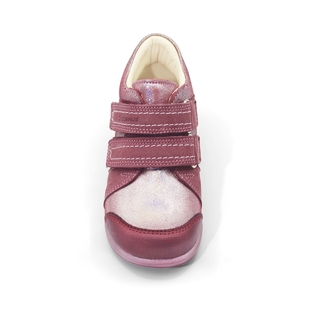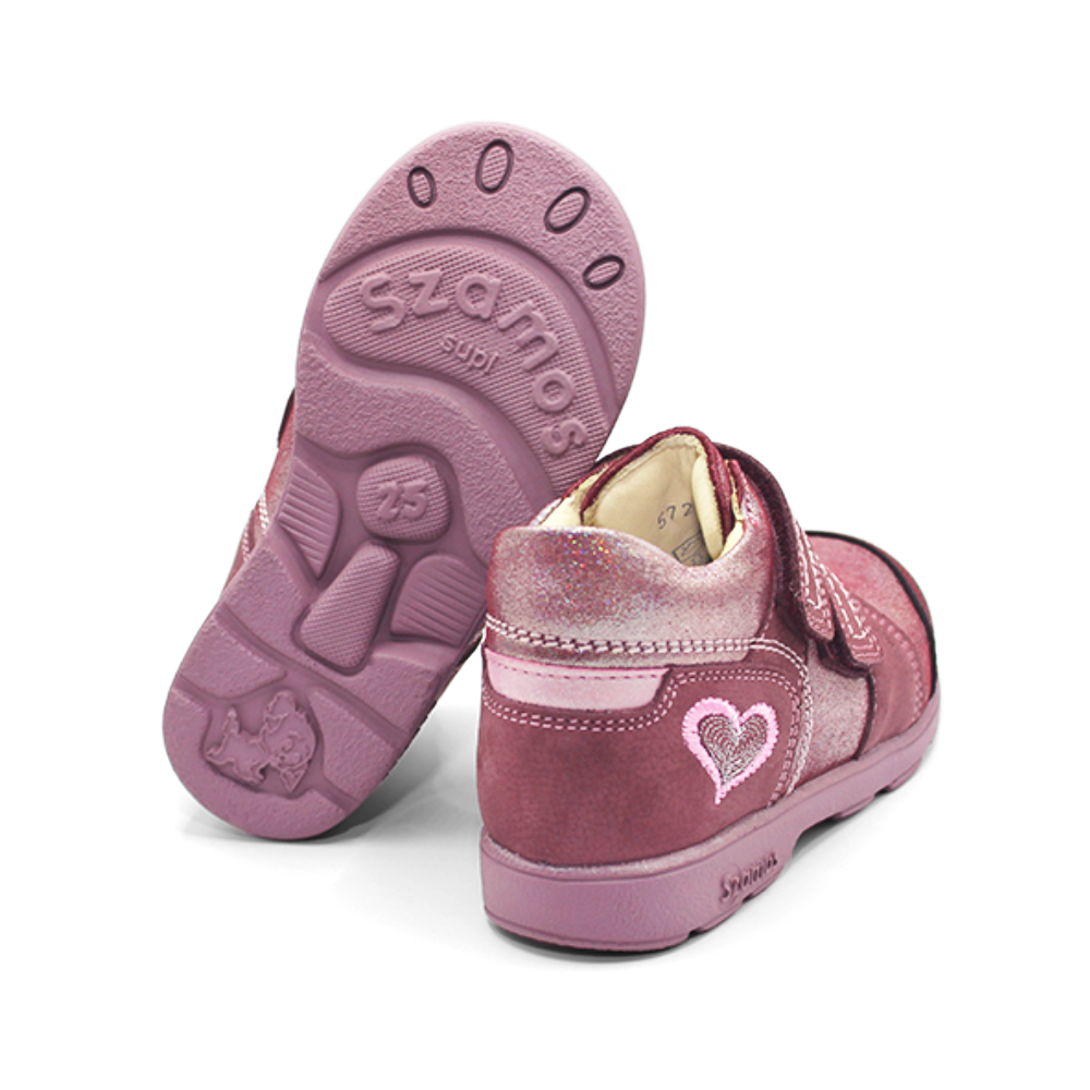 Încălțăminte de copii comodă și sănătoasă. Câlcâiele încălțămintei sunt întărite, talpă supinat, semi-rigidă şi aderentă. Călcâiul este înclinat din interior spre exterior, și este fabricat din piele naturală atât în interior cât și în exterior.