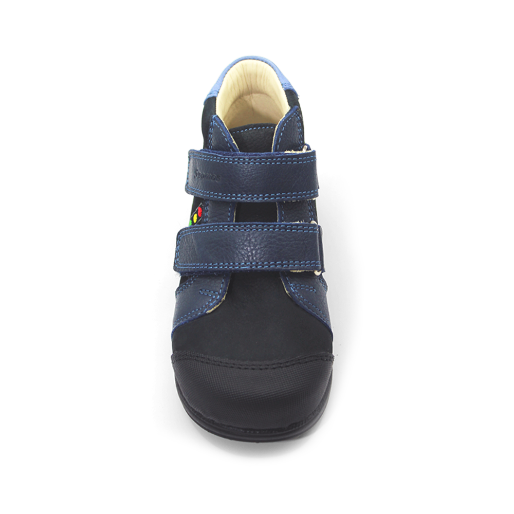 Încălțăminte de copii comodă și sănătoasa. Câlcâiele încălțămintei sunt întărite pentru a permite piciorului să se dezvolte corect și sănătos.Talpă supinat, semi-rigidă şi aderentă. Călcâiul este înclinat din interior spre exterior, și este fabricat din piele naturală atât în interior cât și în exterior.