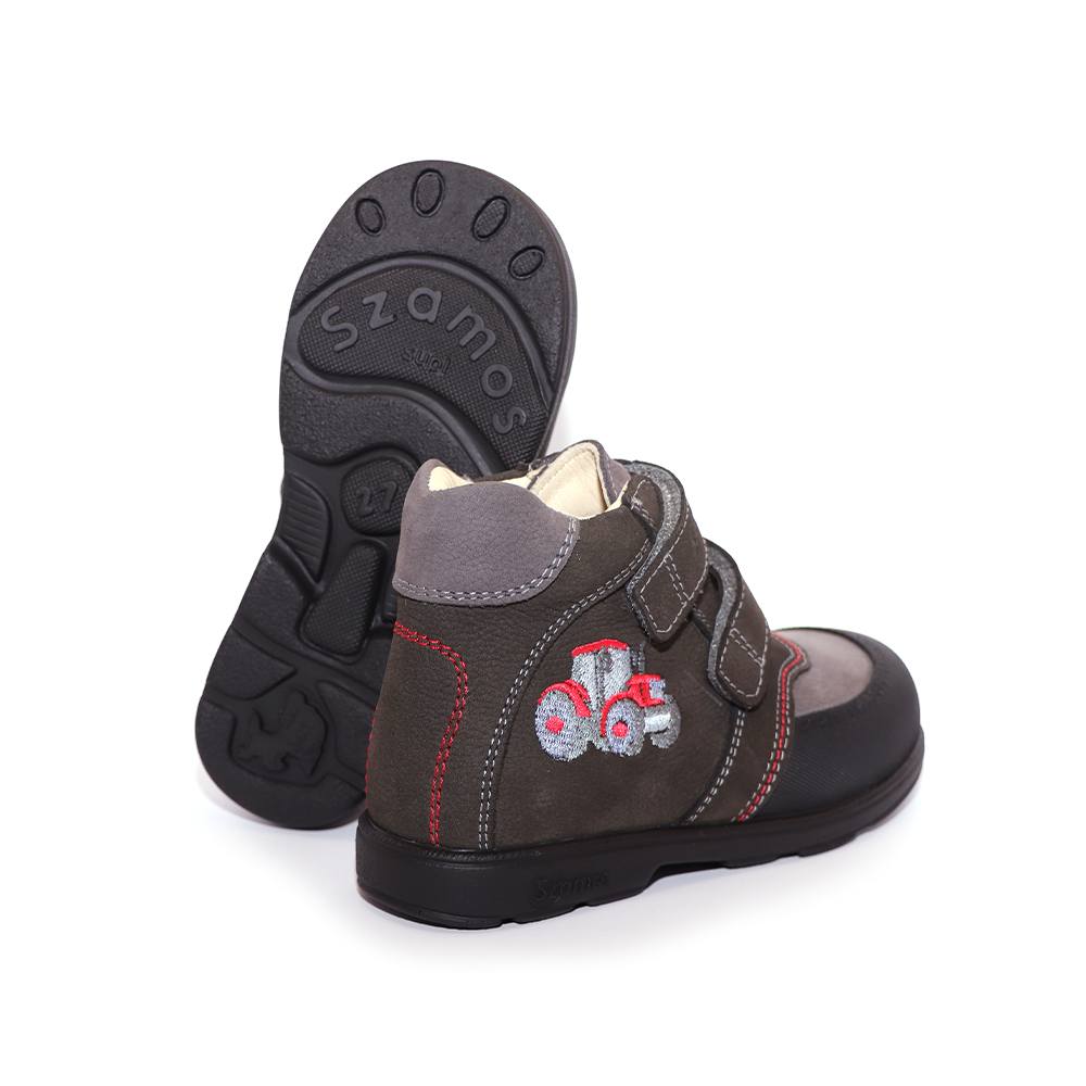 Încălțăminte de copii comodă și sănătoasa. Câlcâiele încălțămintei sunt întărite pentru a permite piciorului să se dezvolte corect și sănătos.Talpă supinat, semi-rigidă şi aderentă. Călcâiul este înclinat din interior spre exterior, și este fabricat din piele naturală atât în interior cât și în exterior.