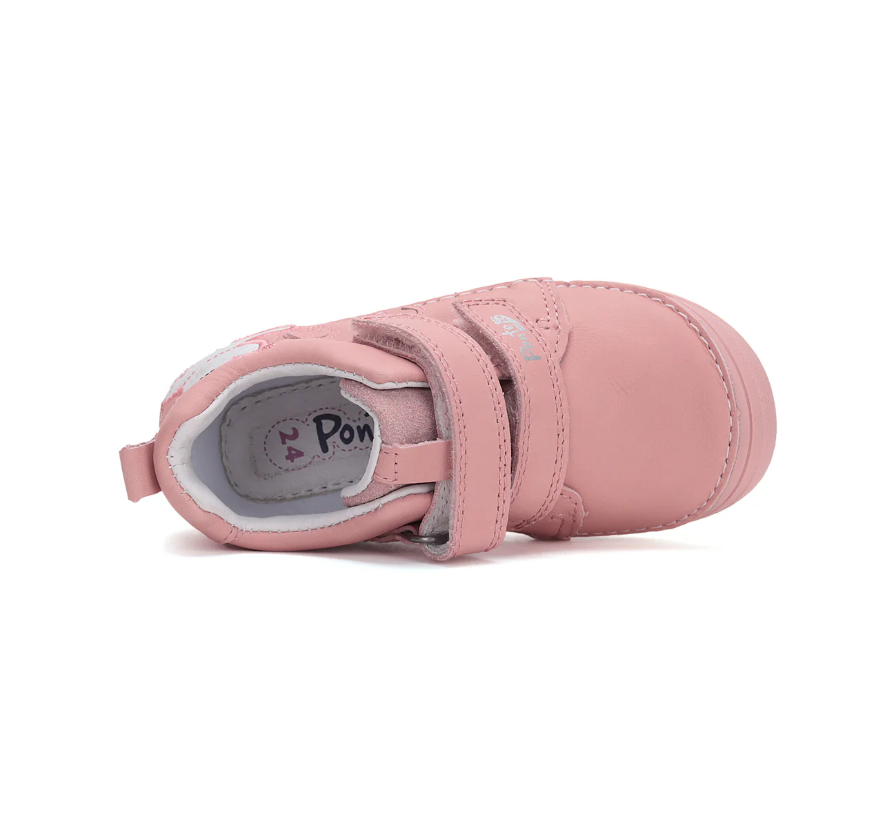 Pantofi cu tocuri înclinate spre exterior. Talpa interioară a încălțămintei este înclinată spre exterior pentru a asigura alinierea optimă a călcâiului și tibiei copilului. Acest design ajută la prevenirea dezvoltării genunchilor valgi și ameliorează durerea piciorului în timpul mersului. De asemenea, previne colapsul arcului longitudinal, curbura coloanei vertebrale și întinderea sau leziunea ligamentelor genunchiului. Inovația tehnologică face ca pantofii supinați să fie imposibil de distins de pantofii „normali”, deoarece supinația de 5 mm este încorporată în talpă.