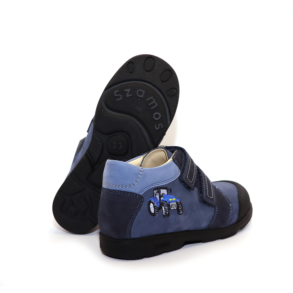 Încălțăminte de copii comodă și sănătoasa. Câlcâiele încălțămintei sunt întărite pentru a permite piciorului să se dezvolte corect și sănătos.Talpă supinat, semi-rigidă şi aderentă. Călcâiul este înclinat din interior spre exterior, și este fabricat din piele naturală atât în interior cât și în exterior.