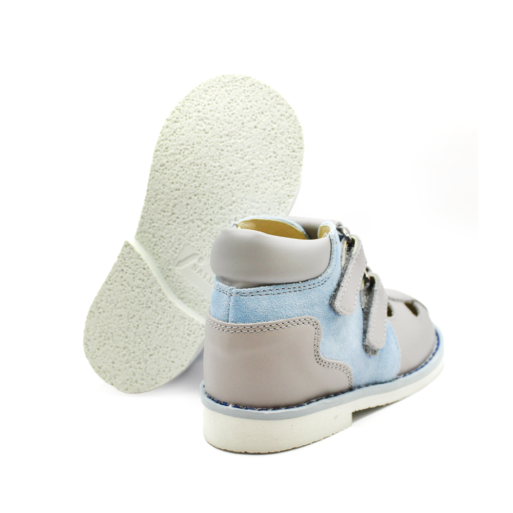 Copilul trebuie să își așeze piciorul pe hârtie, apoi conturează piciorul cu creionul. Măsoară apoi modelul de talpă obținut, unind degetul cel mai lung cu călcâiul, apoi adaugă 5 mm.